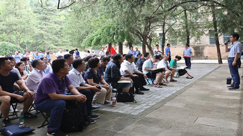 党性教育培训班全体学员怀着对红色革命圣地延安无限的向往和崇敬之情,来到延河之滨宝塔山上,聚集到党旗前,在学院党委书记罗滌的带领下重温入党誓词,接受“不忘初心、牢记使命”理想信念再教育。接着,学员们又来到杨家岭革命旧址聆听延安大学张文生教授的现场教学《毛泽东与黄炎培纵论历史周期律》。随后,大家到中央大礼堂重温了作为延安精神重要内容之一的七大精神。学员们还参观了毛泽东、周恩来、朱德等老一辈革命家的旧居。