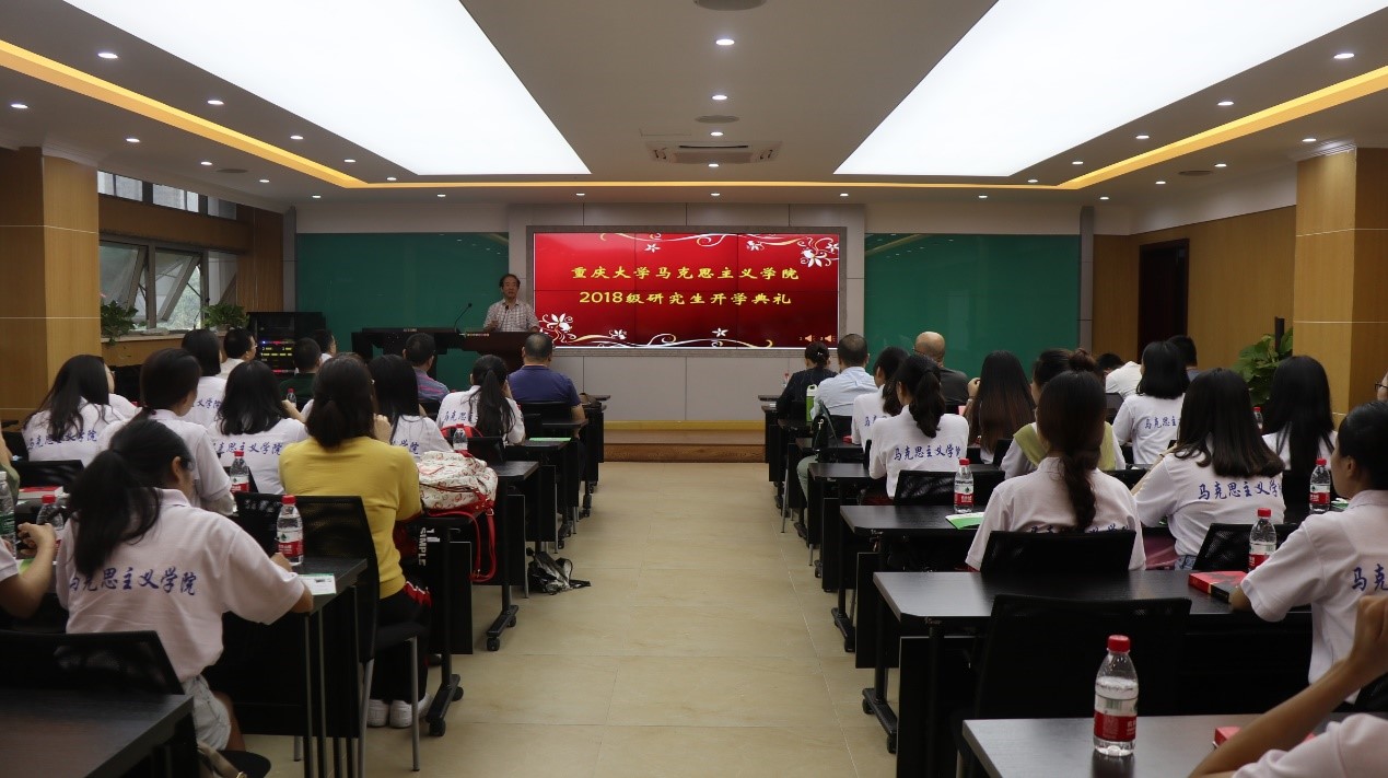 在408会议室举行2018级硕士研究生开学典礼,学院领导班子、研究生导师代表以及2018级全体硕士研究生参加了典礼。开学典礼由学院党委副书记、纪委书记温健琳主持。