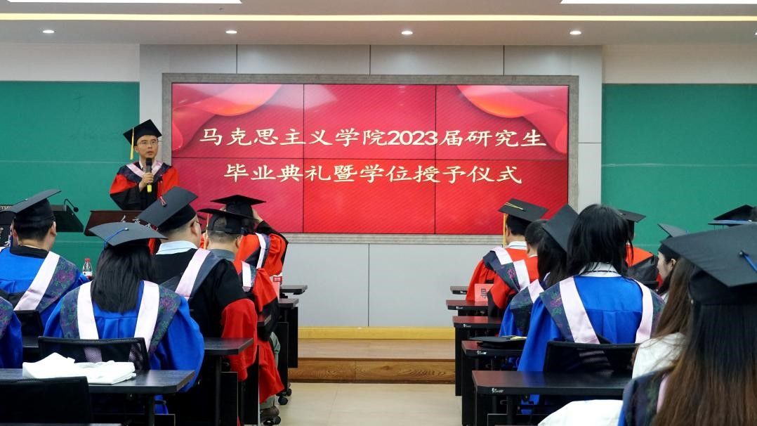 的发展历程以及近年来取得的成绩。他鼓励毕业生们在未来的征途要做到“守正创新”,谨记自己是马克思主义理论的研究生,提升自己的综合素质,在工作岗位上发挥自己的专业特长,牢记“马院姓马,在马言马,建设祖国,一马当先”。最后,他祝福2023届毕业生们前途似锦,以饱满的干事热情、昂扬的奋斗姿态,开启人生新征程,谱写人生新篇章!
