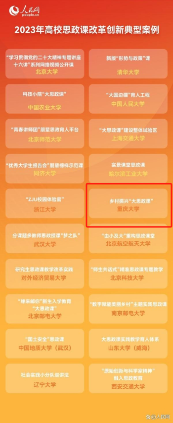 《2023年高校思政课改革创新情况分析报告》分析了本年度高校思政课创新呈现的五个特点,并根据各高校思政课程的社会反响、信息传播量、主流媒体关注度、舆论反馈情况等维度,在全国征集推介选出20个优秀思政课程案例,以期为各高校思政课改革创新提供借鉴启示。我校正规博彩平台