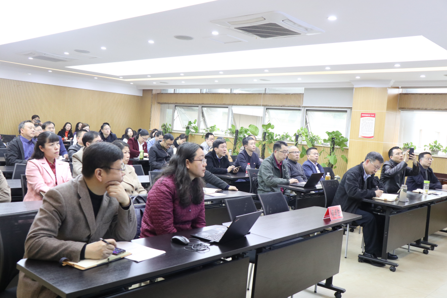 全体院领导和教职工参加报告会,会议由学院党委书记罗滌主持。