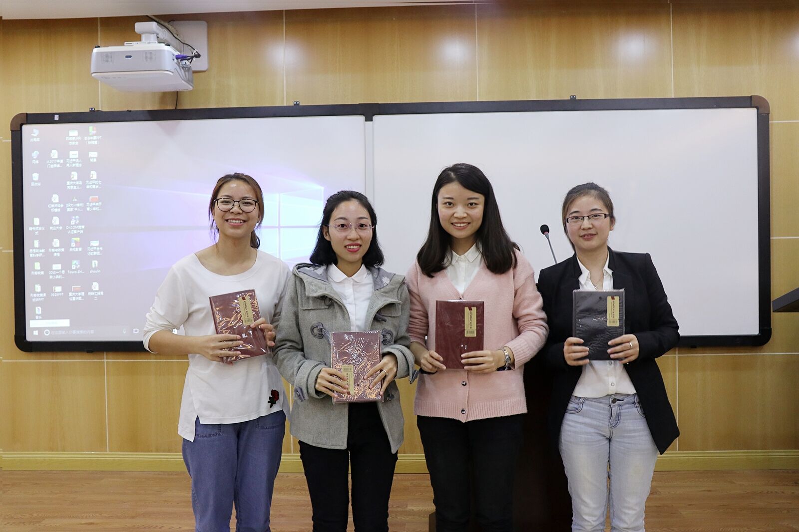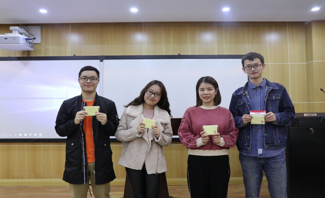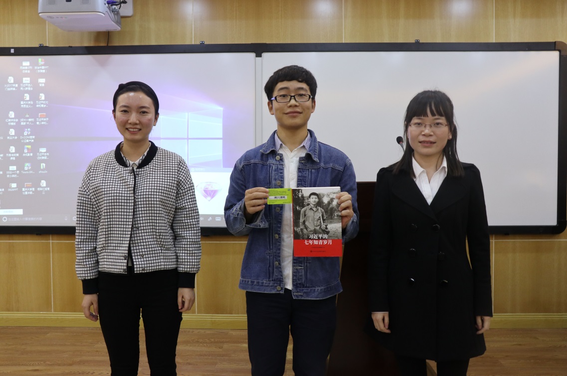 小组汇报结束后,经过激烈的评分,最终第一组获得一等奖(200元书费),第二组获得二等奖(每人一个笔记本),第三组获得三等奖(每人一本便利贴),三个小组成员上台领奖。