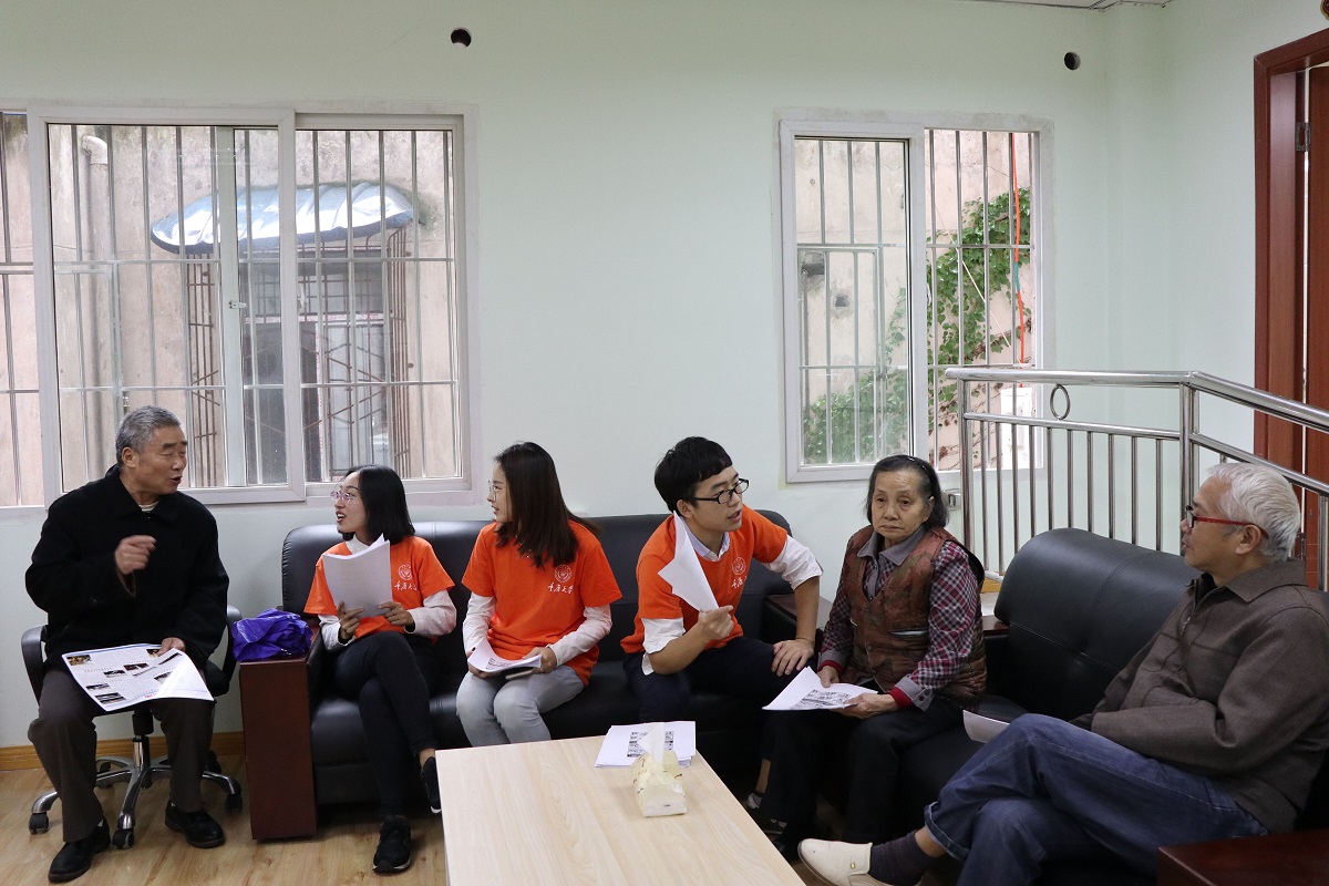 一首“高举党的伟大旗帜——歌颂祖国”的深情朗诵拉开了志愿者活动的帷幕,朗诵结束后,各位老人报以热烈的掌声和慈祥的笑容。随后,同学们各司其职、有条不紊地开展起志愿服务工作:有的负责现场引导、秩序维持等工作;有的与老人们谈天,并介绍党的十九大召开情况;有的协助医生,帮助老人体检;有的帮助老人整理衣物。在同学们的热情宣讲下,老人们谈心勃勃、意犹未尽,有的还穿上美丽的衣服,在我们的镜头下,留下了美好的回忆。