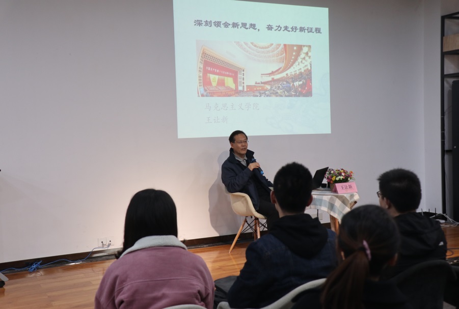 “红岩读书会”漂流队成员的身份参与了电子科大马院承办的“导师讲坛”。电子科大王让新教授作了题为“深刻领会新思想 奋力走好新征程”的报告,王让新教授从十九大报告的主要内容、三大贡献和文本框架展开进行了详细的讲解。王让新教授最后指出,作为学生一定要把十九大精神落到实处,奋力实现中国梦。正规博彩平台