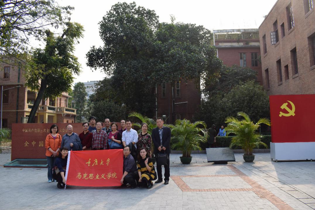 程京武院长和老师们的热情欢迎。在交流会上,两校老师分别就《中国近代史纲要》、《毛泽东思想和中国特色社会主义理论体系概论》课程的学分设置、实践与理论课程安排,以及两院发展情况作了简要介绍。交流会后,徐鲲副院长带领老师们参观了中山纪念堂和黄花岗烈士陵园,在烈士陵园,梁平教授给教师们讲述了黄花岗七十二烈士的革命事迹。