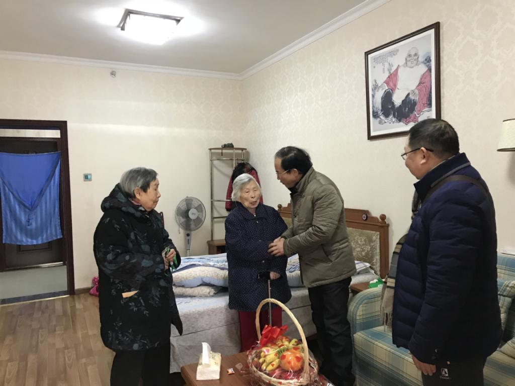 91岁老领导王佩善和80多岁老教师戴宗培,实地参观和考察了养老院的住宿、餐饮、医疗和休闲设施,走进宿舍亲切交流,了解两位老师的日常生活和身体状况。肖院长向两位老师介绍了学院独立运行以来的建设情况。经过近一个小时的亲切交谈,两位老师很开心,感谢学院领导对她们的关心,并祝福学院越办越好。肖院长一行还先后到离休干部杨德林、退休教师高燕丽、吴绍琪等老师家看望慰问。